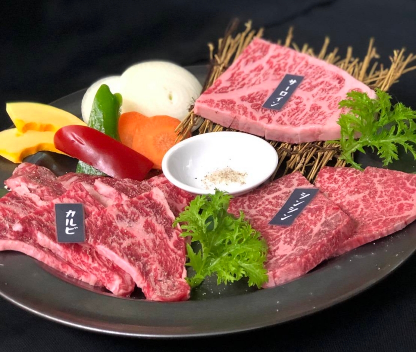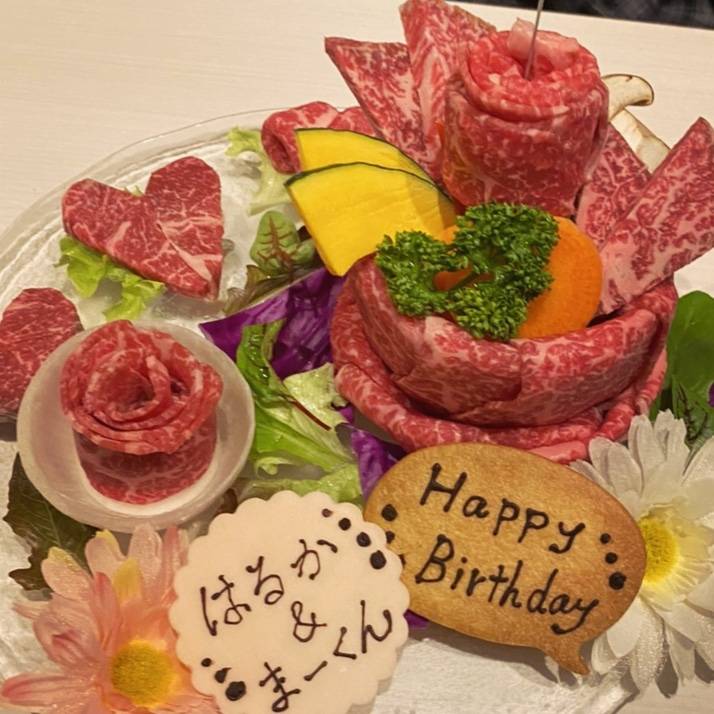 キムチ2点 ・バー二ャカウダまたはサラダ ・一枚タン ・極上焼きシャブ ・カルビ ・極上赤身 ・極上霜降り